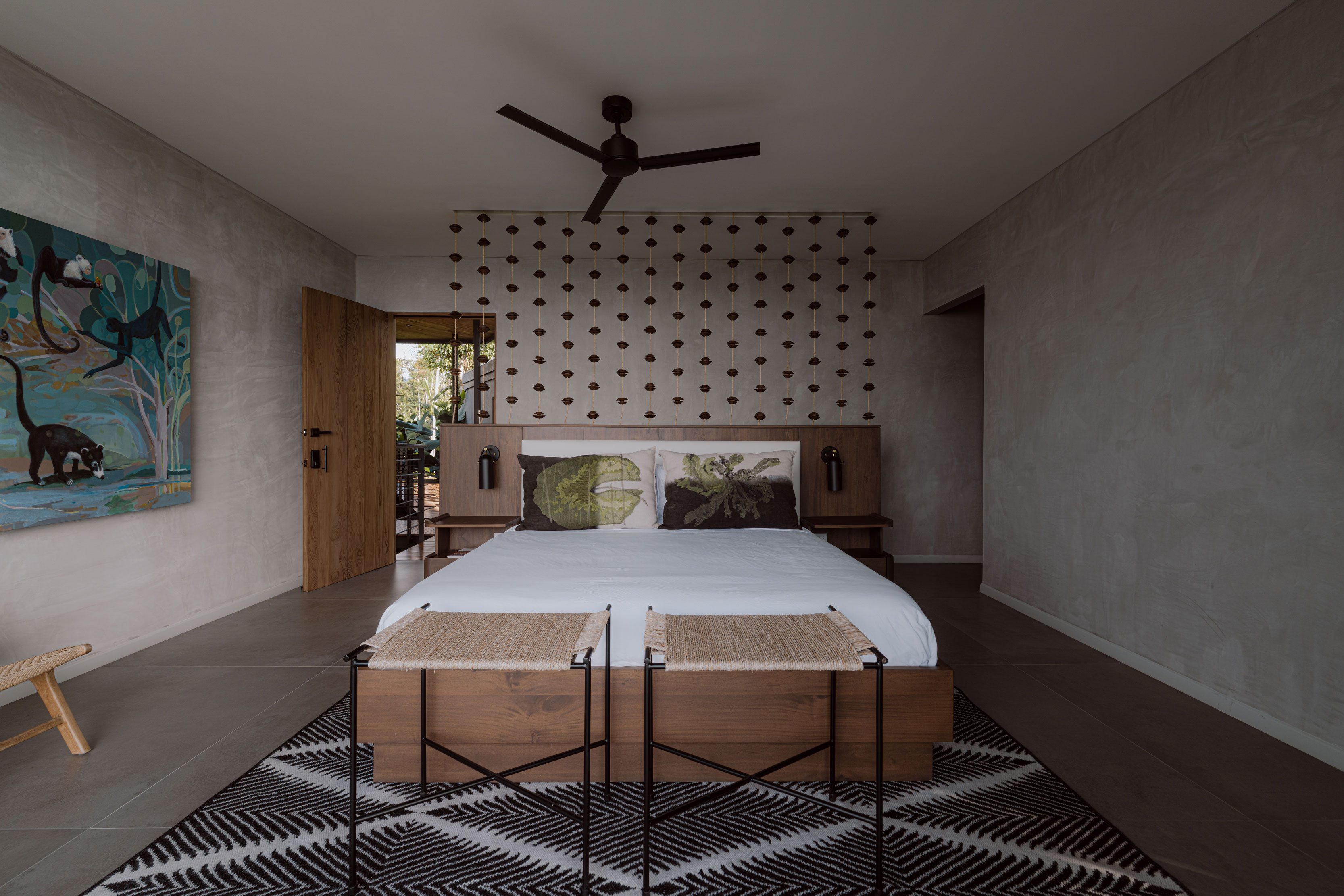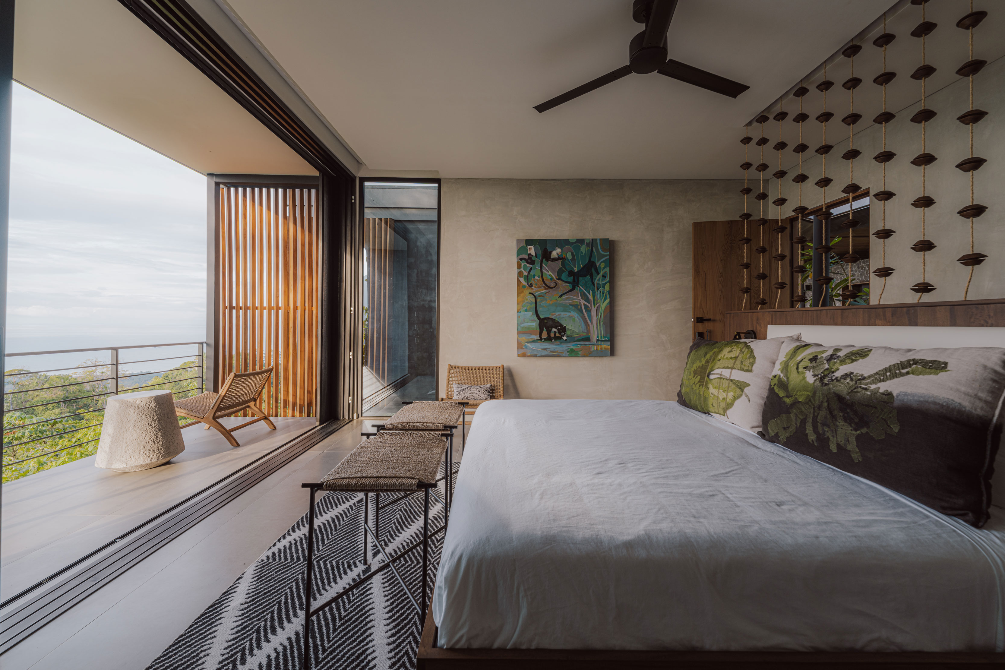 Amamos Costa Rica desde hace muchos años, y sabíamos que nuestra casa debía convertirse en parte de este lugar. Imaginábamos espacios que se sintieran como un oasis natural, no solo para nosotros, sino también para quienes recibimos aquí. Encontrar un nombre para la casa fue parte del proceso. Descubrimos la palabra japonesa Komorebi, que describe la luz del sol filtrándose entre los árboles. Ese juego de luz y sombra capturó exactamente la sensación que queríamos crear.