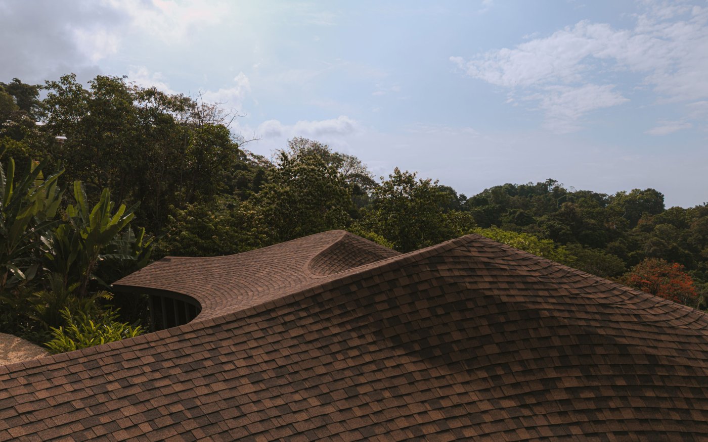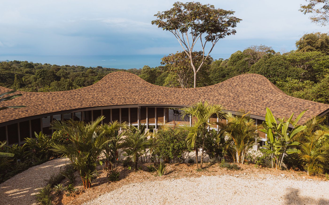 El sistema constructivo se basa en una estructura modular y liviana capaz de adaptarse a las curvas requeridas por el sitio. Las estructuras metálicas fueron soldadas en obra para conformar un paisaje de cubiertas que se comporta como una nueva forma del terreno, compuesto por tejas marrones que se integran armoniosamente con el entorno. Esta metodología permitió al equipo construir de manera eficiente manteniendo la precisión, reduciendo el impacto en el sitio y protegiendo el delicado entorno de Osa.