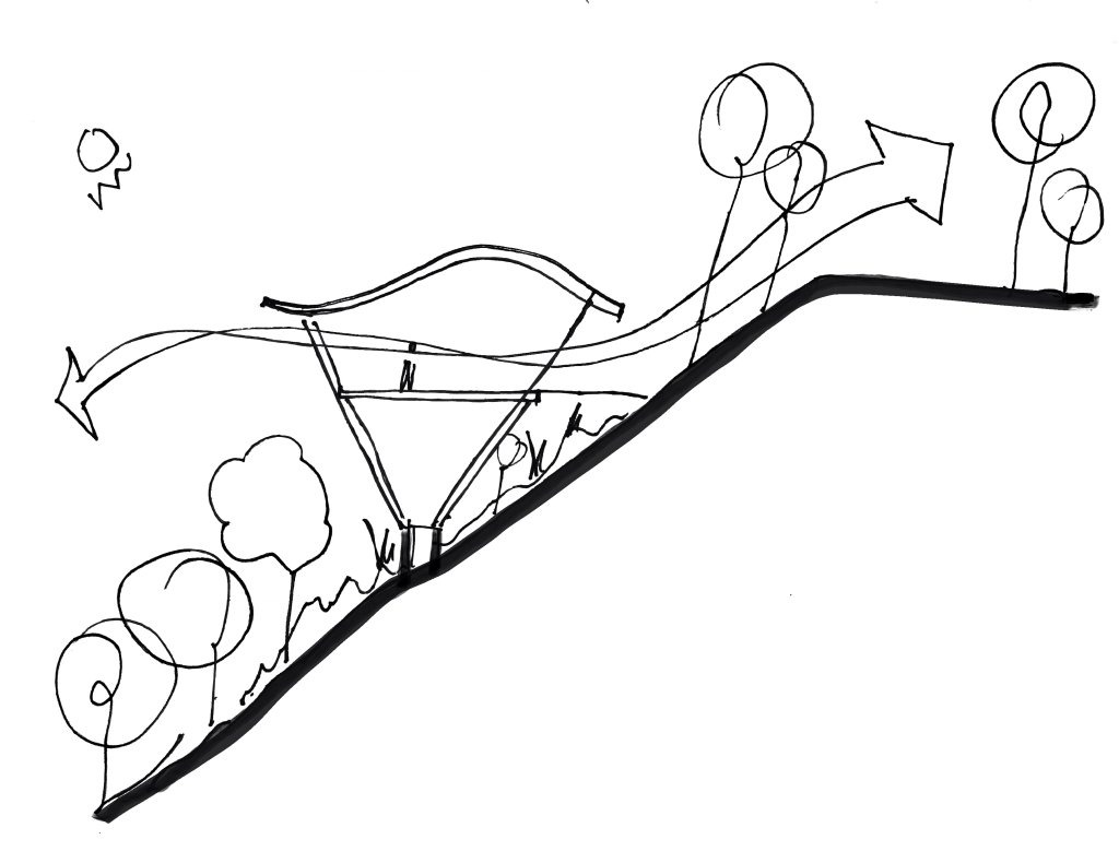 La vivienda se posa de manera ligera sobre la ladera mediante un módulo estructural repetitivo dispuesto siguiendo los contornos naturales del terreno. Esto permite que la edificación flote sobre el dosel vegetal y genere la sensación de fluir con el paisaje en lugar de imponerse sobre él. Cada espacio se orienta hacia el Océano Pacífico, haciendo que la vida cotidiana se entrelace con la luz cambiante y las brisas refrescantes. Al eliminar ventanas y puertas en el frente orientado al océano, el límite entre interior y exterior desaparece, permitiendo que los habitantes se sientan inmersos en el clima y la ecología de Bahía Ballena.